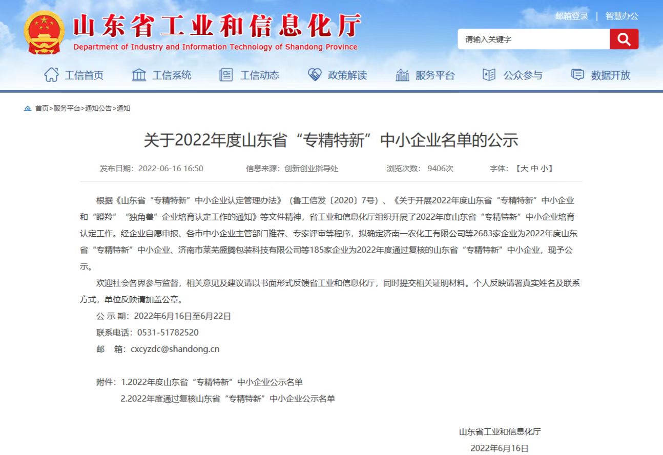 水發(fā)奧翔公司順利入選2022年度山東省“專(zhuān)精特新”中小企業(yè)
